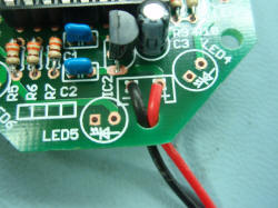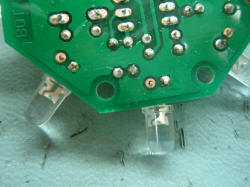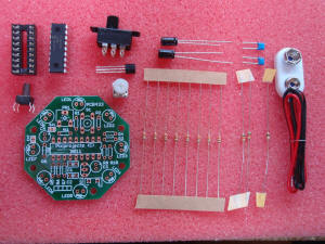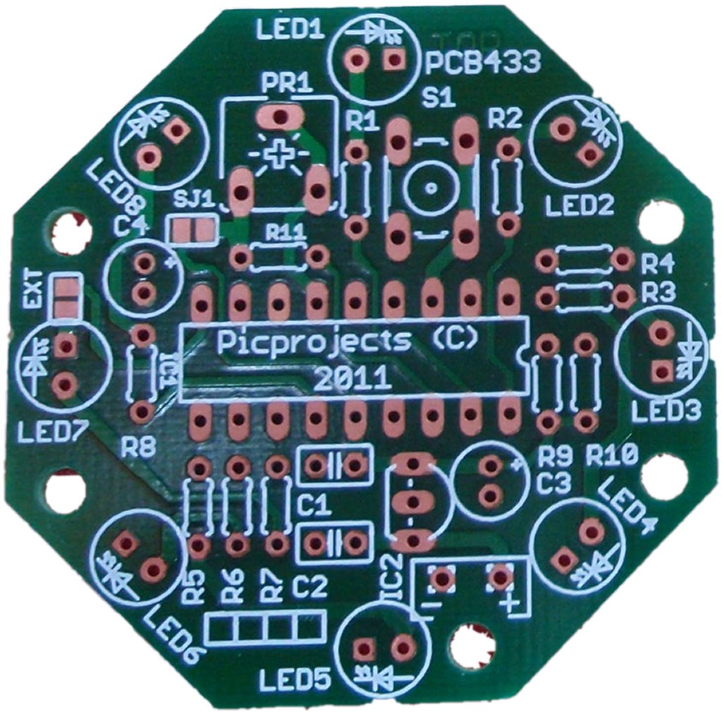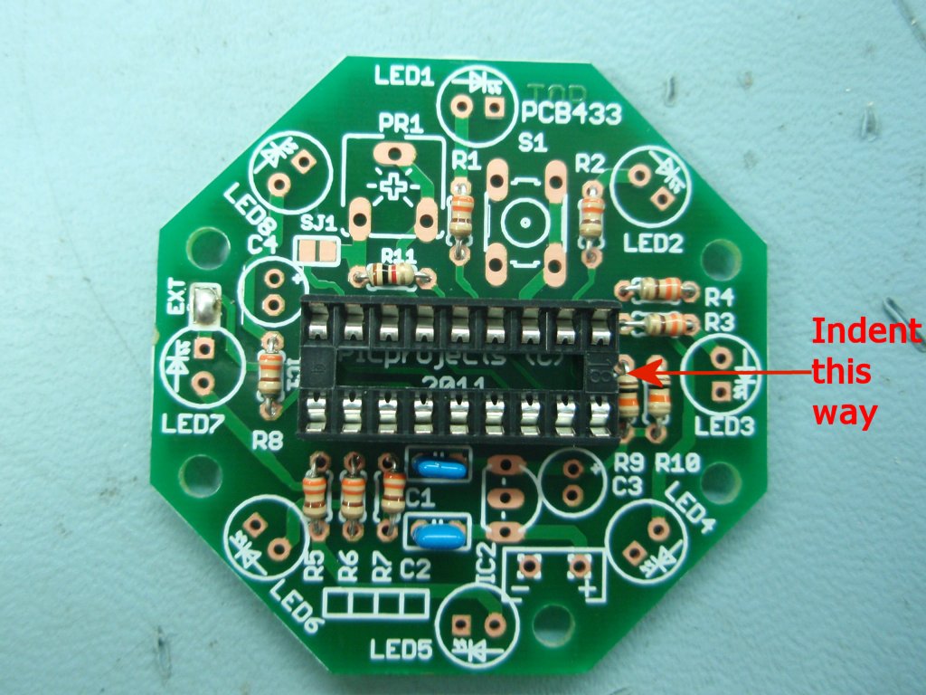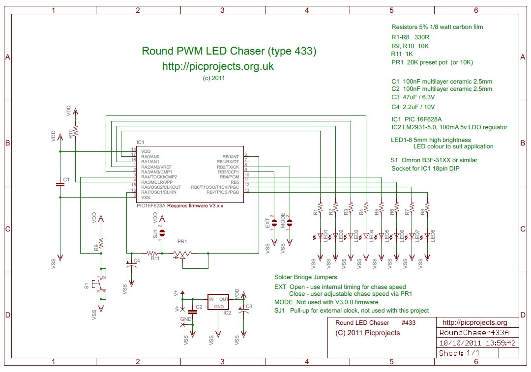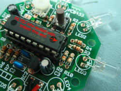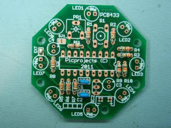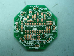the PIC 16F628A microcontroller, IC1. The program that runs on this chip controls the LEDs