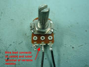 10K variable resistor. Note how one wire connects to both the