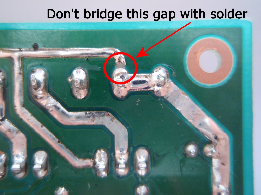 Don't bridge solder across the gap