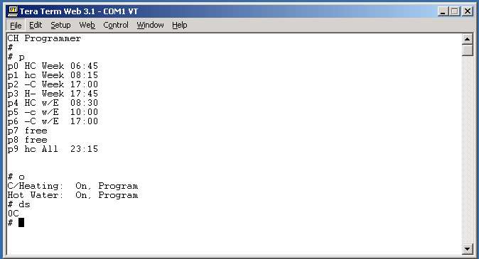 At power up the programmer sends a VT100 [ESC] c command followed by the text 'CH