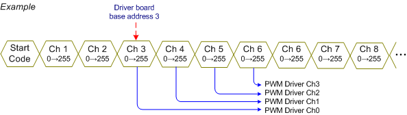 data in channels 1 to 4 increments from 0 to 255 in a repeating