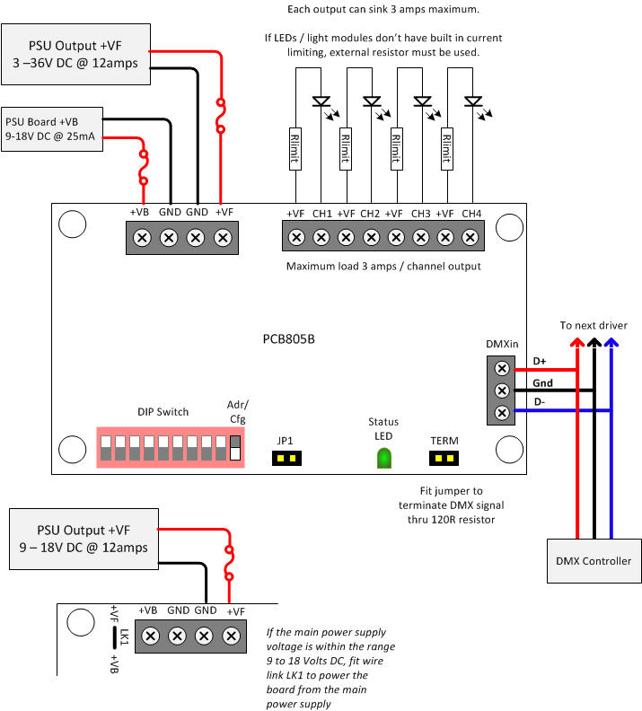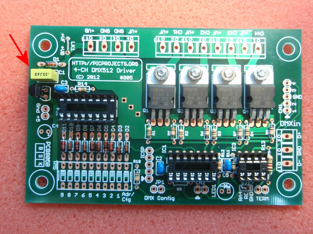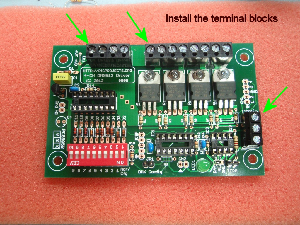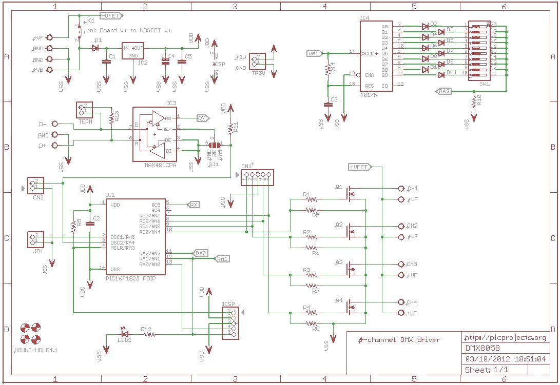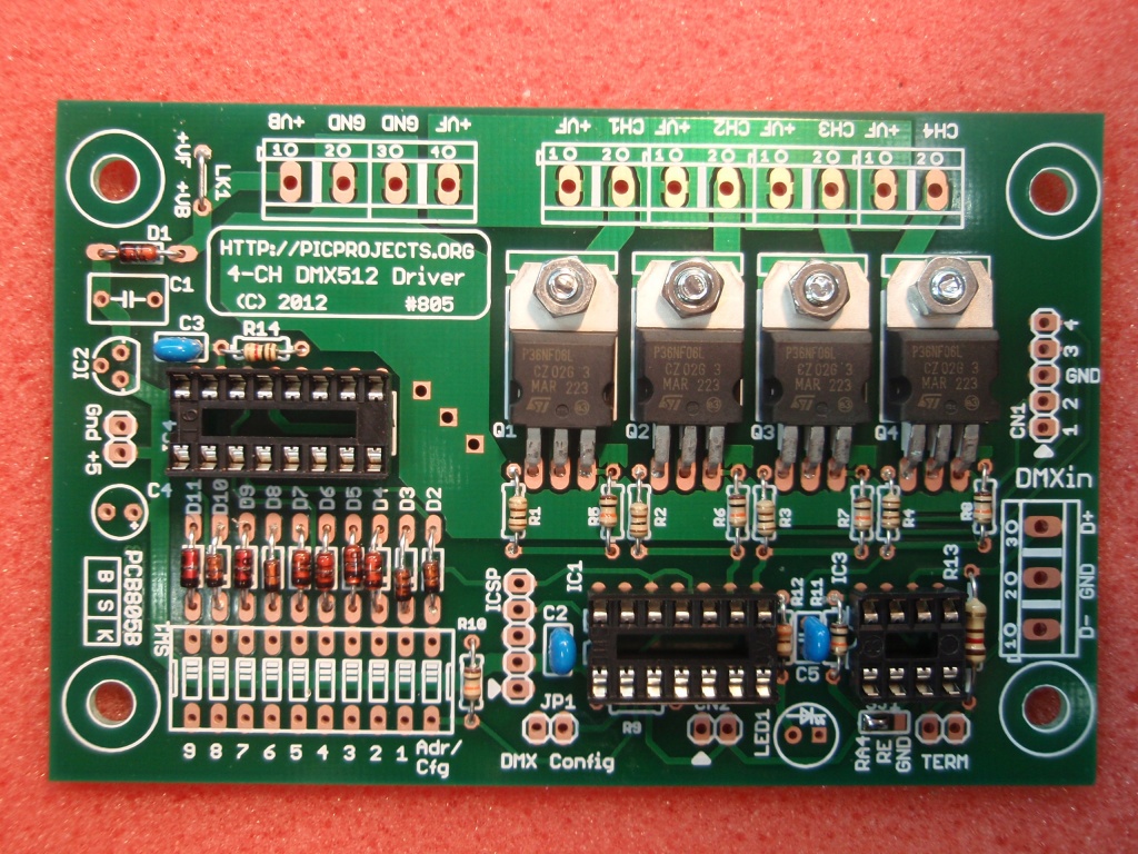 DMX512 driver project #800 is now redesigned to incorporate the optional address configuration switch on the main PCB.