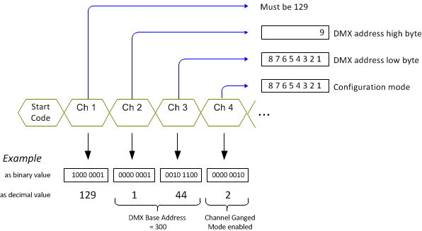 Fitting a single jumper puts the firmware into 'in-band' configuration mode. DMX