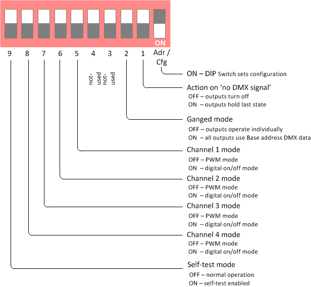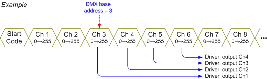 addresses across the full 512 channel address range. It can drive LED arrays or low voltage lamps with either an 8