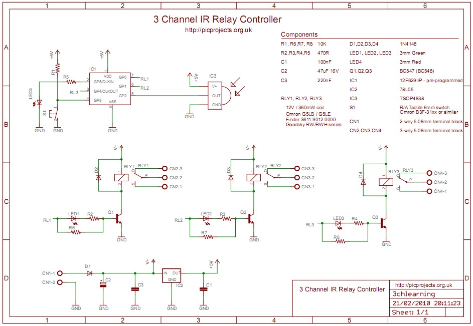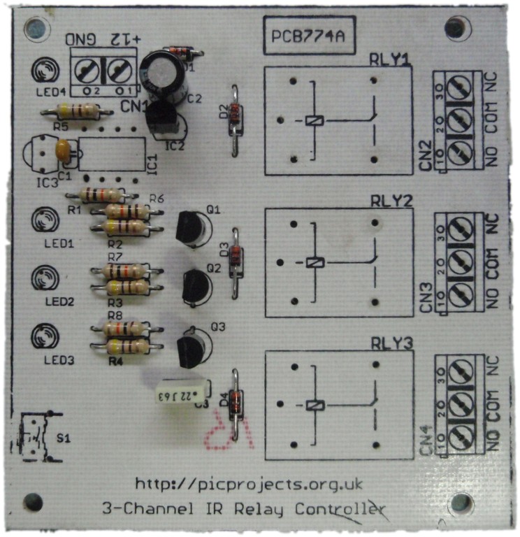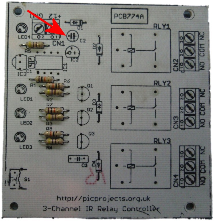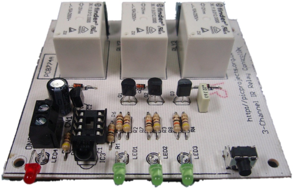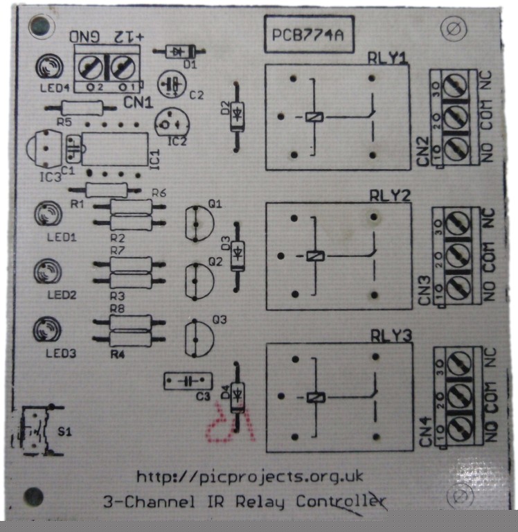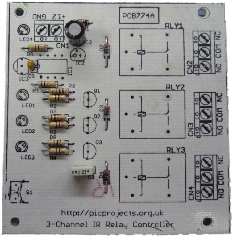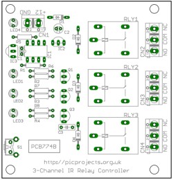 for the PIC microcontroller IC1 and the IR receiver IC3.