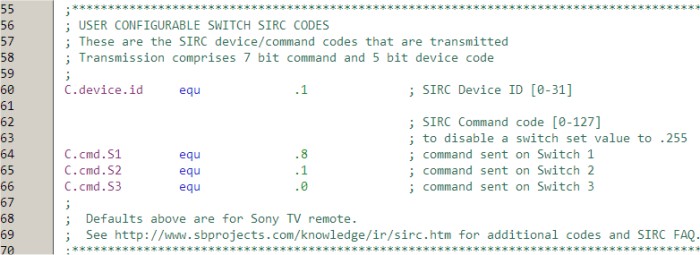 20-bit versions of SIRC. The firmware presented here does