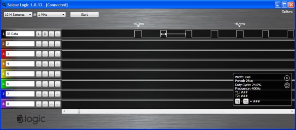 The signal modulates a 40Khz carrier with a 24% duty cycle.