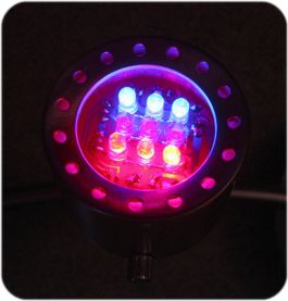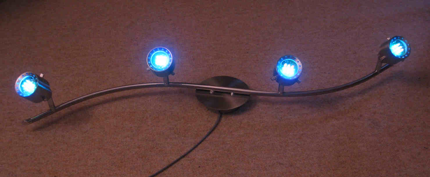 Blue high brightness LEDs that are pulse width modulated (PWM) to vary