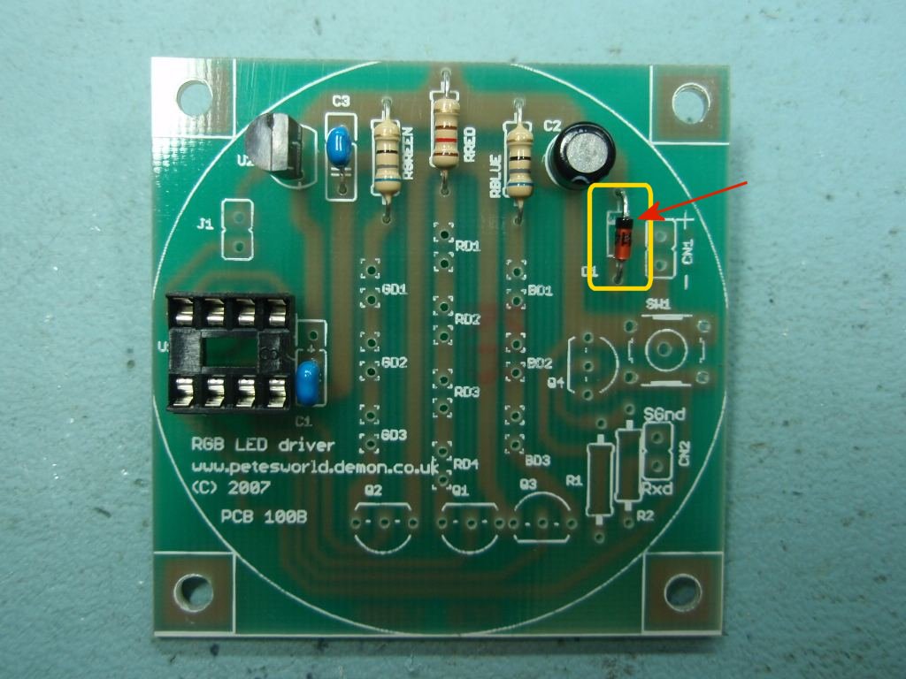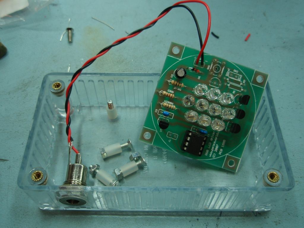 align the body of the LEDs, solder one lead of each LED. (Photo.9)