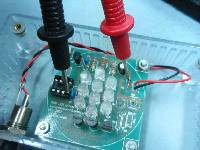 a 5 volt test voltage. When the LED lights, the lead connected